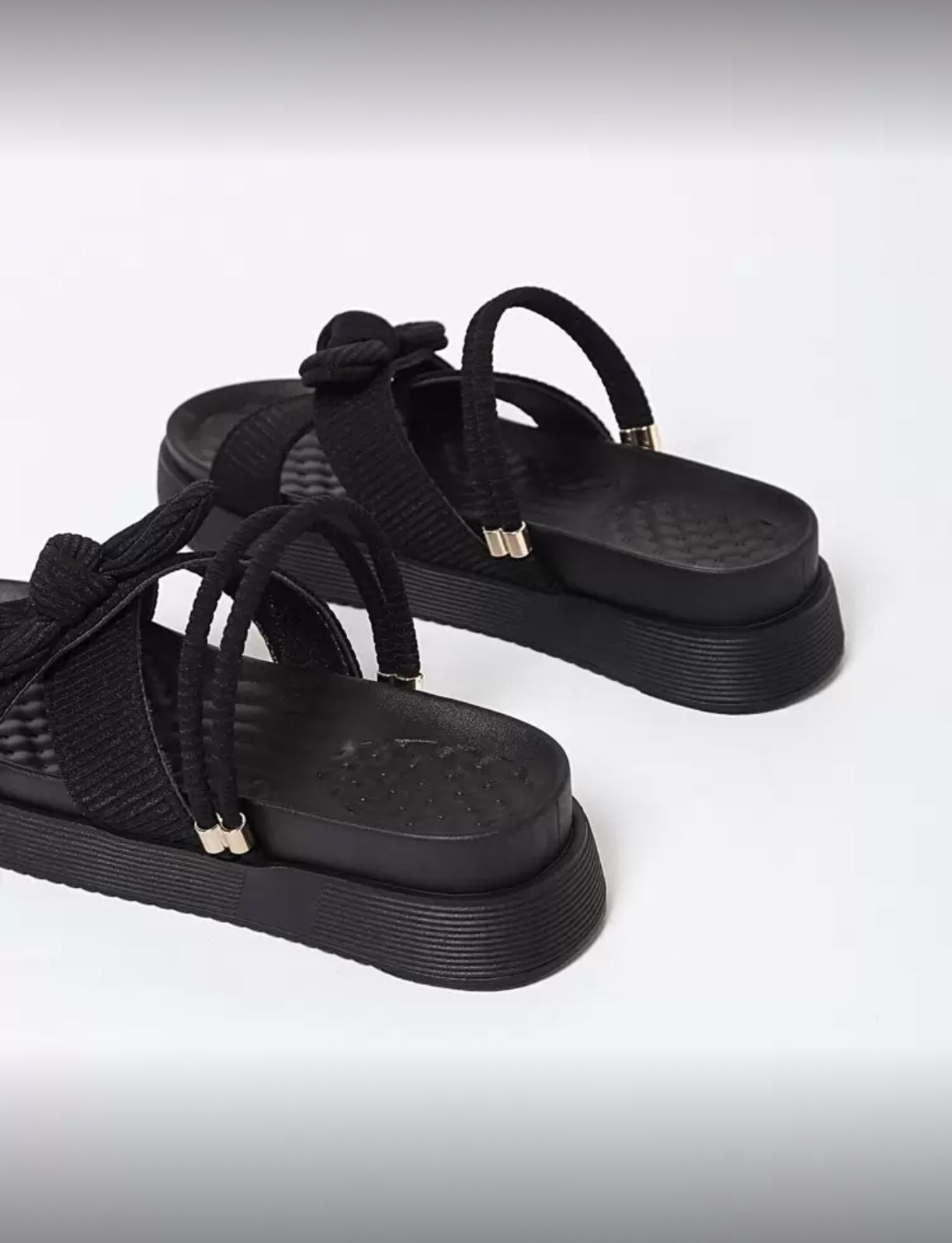 Black Cross Strap Sandals With Bow Details