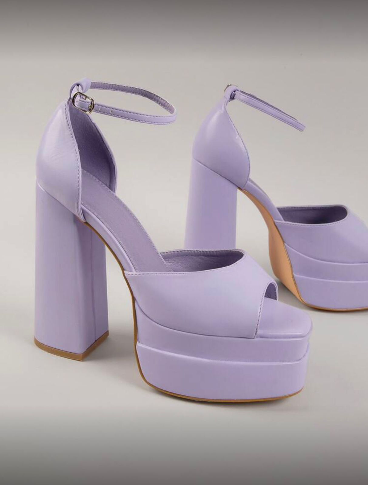 Purple Buckled Ankle Strap Platform Heels